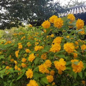 ヤエヤマブキ さん方 明るく賑やかに、談笑していました。晴れてきそうです。🧡