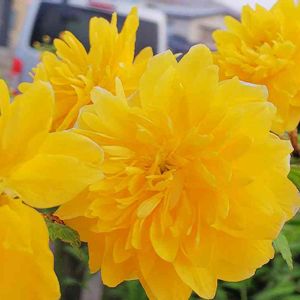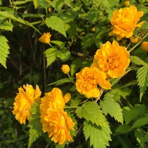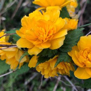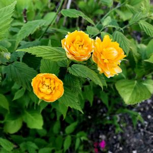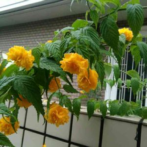 4/4(木)⑥ 山吹八重咲き、山吹、シロヤマブキ←カジイチゴでした💡前のpicに追記するより新しく書くことにします🤗🎵 山吹って一重咲きは五弁の花びらかと思ってましたが、これは六弁ですねー。シロヤマブキも四弁が普通ですが、何故か五弁でした←カジイチゴなので五弁です。葉が似ていてヤマブキかと思ってしまいました😅失礼しました。 💛ご存じの方もいらっしゃると思いますが、太田道灌の逸話が有名なヤマブキの花です。 💛太田道灌が若い頃、急な雨に会い、簑を借りようと近くにあった農家を訪ねると、若い娘が黙って盆に一枝の山吹の花を載せてきました。 簑は借りられず道灌は内心腹を立ててこの話をすると、家臣に 「それは後拾遺和歌集に出てくる歌『七重八重 花は咲けども山吹の実のひとつだに なきぞ悲しき』という歌に、貧しくて簑がないことをかけて表したのでしょう」と教えられ、大層感心しました。その後は武芸だけでなく教養も磨くようになり、歌人としても有名になりました。という逸話に出てくるお花です。 一重咲きではなく八重咲きの花の方でしたね。 💛八重咲きの山吹には実がなりません。シベが花びらに変化したからだそうです。 💛シロヤマブキには黒い実が、 一重咲きのヤマブキには茶色い実がなるそうです。