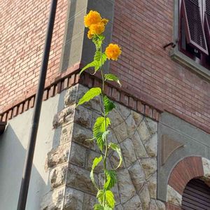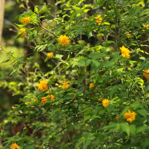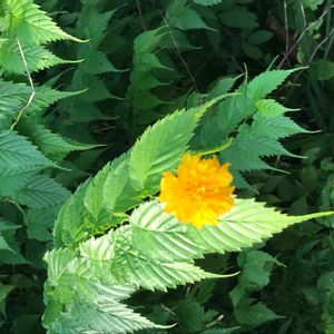 おっはよう🤗あれっ? 今ごろヤマブキが一輪咲いてる⁉️ ラッキー❣️なんか嬉しいぞ〜😘💕💕 春にいっぱい咲いてくれた家のヤマブキちゃんです。