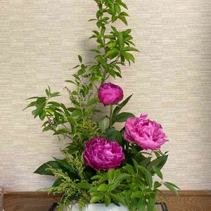 *稽古のお華です* シャクヤクが大きい! こぶしほどの大きさがあります この5月から稽古か再開しました