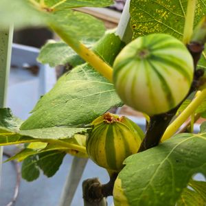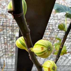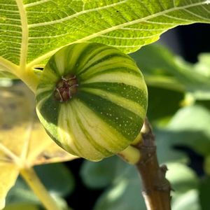 イチジク(お店で📸) 園芸店の樹木コーナーをブラブラしていると、こんなに可愛い縞々柄のイチジクを発見‼️ 名前は『ゼブラスイート』🦓🦓🦓 でも収穫期には縞が消えちゃうんだとか🫏 「糖度27度くらいと常識を打ち破るような濃厚な甘みがあり、風味ゆたか」だそうですよ〜😋