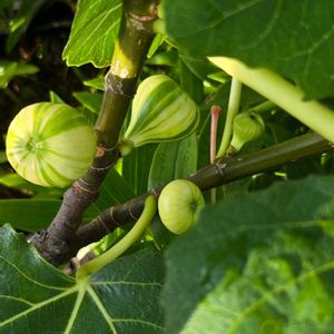一昨日、実付きで購入したイチジク・ゼブラスイート🌱 去年は環境に慣れてもらう為、実がつかないのは仕方ないとして… 今年はどうなんでしょう? 矢印の丸いのがそうなのかな? 実ると糖度27度あるらしいけど、私の性格的に早く実る夏果にしとけば良かった😅