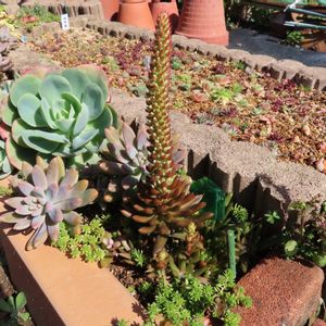 花が咲く寸前の地植えコーナーの爪蓮華。この株は2年前に花を咲かせて枯れてしまった株の子株。1つの株は3年くらいで花を咲かせて枯れてしまうけど,子株が子乗るので次第に増えてきた。 今日は後ろのスペースに寒さに強いセンペルビウム数種,ジョビバルバ,ドドランタリス,姫明鏡を鉢から移した。春にはぎっしりと密集してくれるはず。