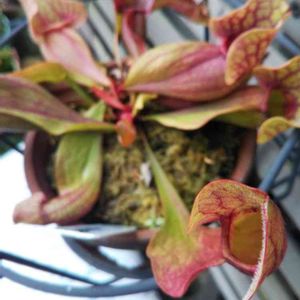 鉢が小さく見えてしまいました、食虫植物「サラセニア」無事これも二年目に突入します。助言を聞いて感謝です。グッーと延び春から比べると別食虫です。