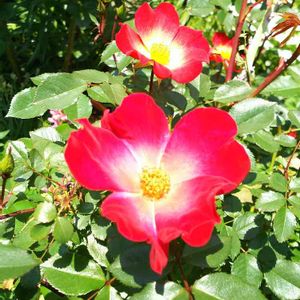 バラ🌹(ノックアウト) 耐病性があり花付きのよい四季咲き木立バラです😊 何と虫を寄せ付けないことから、ノックアウトと名がついたそうです😉
