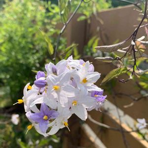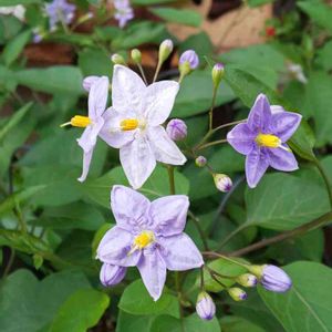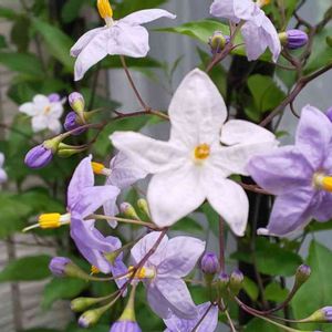 ツルハナナス ソラナム ヤマトホロシ ソケイモドキ ナス科 どれも正解? 繁殖力旺盛だって! 鉢植えだとどうなる⁉️ 植えれば結果分かるよね😆 でもねぇ……… 花が紫→ラベンダー→白と変化 ニオイバンマツリも同じね グラデーションっていいね😃