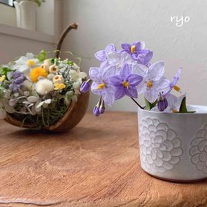 ツルハナナス💕 相変わらず、次々とお花を咲かせて楽しませてくれています 今は寄せ植えにしてるけど、折角のツルを楽しめるように工夫しなきゃ‼️