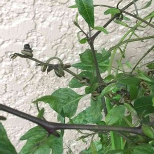 ツルハナナス いただいたひと枝で挿し芽をした🎶 夏も無事に乗り切って今でも グングン延びています😅 ツルがすごい👀ガッツリ掴む感じで絡みつきます。冬が越せれば花が見られるかな? 楽しみです🎶😊