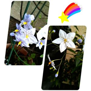 ぽん散歩🍀 ツルハナナス💜🤍🎶 ナス科・属 日本には明治時代に渡来。 花は咲き進むに従って紫色から白へと変化します。 また最初から白花が咲く品種もあります。