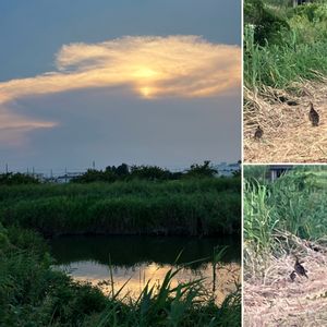 こんばんは♪ 夕方の西の空 雷雨でも有るかと 待ってる この時間でも 無さげ〜🥲 丁度 散歩してたら キジの母子が❣️ 大急ぎで逃げてった😉