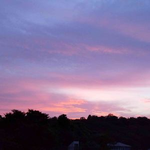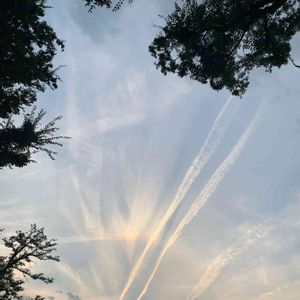 夕方17時頃の空です。 木々のシルエットが綺麗でした😊 今日の雲はすじ雲という雲でしょうか… 踊っているような、細い煙のような雲でした