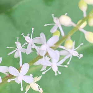 赤い実になる前の ジュズサンゴの白いお花たち 小さな翅を広げて動き出しそうです…