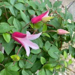 昨年花屋さんで一目惚れ❣️誕生日だからと、夫に出してもらったクレマチス エールフクシマ 大事にしてます 可愛いく咲いて来ました💖