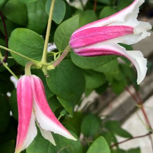 クレマチスのエールフクシマ、咲きました!! 今年小さな苗を買ったのですが、枝が細くてパキパキ折れてしまうので、なんとかテープで補強しながらやっとのこと2輪咲きました。 小さな蕾も見えるので、もうちょっと楽しめるかも☆ バイカラーが可愛い♡