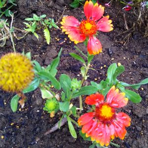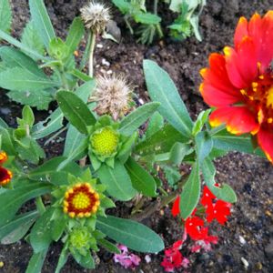 10日ほど前に処分棚からお連れした、 サンドリーム(ブライトレッド) 花壇に植えてあげたら元気復活‼️… 残念ながら昨朝の⚡️豪雨☔️☔️で花びらが散ってしまったけど😰😰小ちゃな蕾も出て来てるし⤴️もうちょっと楽しませてくれそうですo(^o^)o *ガイラルディアの園芸品種です🌼