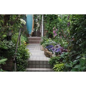 ◆いつもの箱庭 カミさんから「通路が狭くなったんぢゃ~ないの?!」と言われてしまった、箱庭のメインの花壇と階段周りの様子です。 鉢を隠すためのアイビーとワイヤープランツが、通路まで出てきているせいでと言って、誤魔化しましたがメインの花苗が大きくなった分、ほんの少しだけ隙間を広げたのがバレてしまったようです。