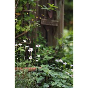 ◆いつもの箱庭 先日までレーマニアとオダマキを置いてあった箱庭入口の枕木周りですが、今はローダンセマム・アフリカンアイズとカラスバニガナ... バックには冬越しした観賞用トウガラシ・ブラックパールとミヤコワスレを置いてみましたが、カラスバニガナな良い味出しているような気がします。
