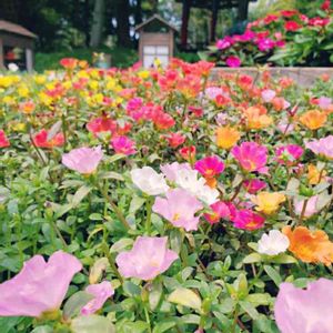 ポーチュラカ 夏休みのラジオ体操 公園に行くと ポーチュラカが お迎えしてくれていました夏の思い出🌼 遠い日の記憶☺️