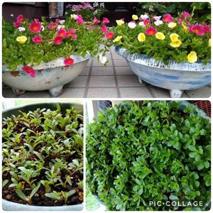 ポーチュラカ 上が第二世代二つ。 下が第三、第四世代。 太陽が無く咲くか微妙(+_+)