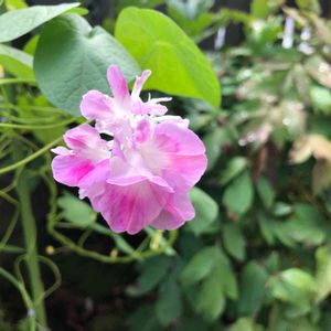 変わり咲きのアサガオ 花友さんからの種で育ちました。 6月に二輪咲きましたがその後地植えにし、つるを伸ばし続け、蕾もちょこちょこ。でも何故か小さいうちに黄色くなって落ちます。 そんな中で今朝久しぶりに一輪だけ開花していました💕 やっぱり可愛い😍 7月半ばに種蒔きしたスプリットペタルはまだ本葉が5枚くらいですが育ってます🌱🌱