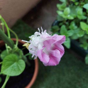 『スプリットペタル』 今年、初めて育ててみました。 種から育てて成長は早かったけど、花がなかなか咲かなかった😕 これは鉢植えをシマトネリコに絡めました。