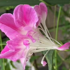 変わり咲き西洋アサガオ 💗スプリットペタル💗 今年も8種類の種を🌱蒔きましたが 天候☔️や虫のせいで😩なかなか育たず… やっと一つだけ咲いてくれました(*^-^) 昨年採れた種を花友ちゃんに送ったら このピンクだけでなく、青い色も咲いたとのこと😲 びっくりしちゃいました〰️💙!! 他のアサガオの開花も待ち遠しいです😸
