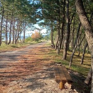 海散歩♪ この木陰に木のベンチが2つ設置されました🤗 散歩途中の休憩場所に利用させていただきます。💕🤗 海を眺めて懐に風を入れるのは気持ちがいいですから❤️❤️❤️❤️❤️
