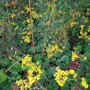 陽射しの差し込む防風林 一面にツワブキが花盛り❤️🎵