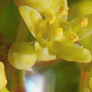 よく見ないと花が咲いているとは思えないノブドウ ぼちぼち咲いています。🤗 受粉すると梅皿のような形が特徴的です 光っているのは蜜なのかな?🤗