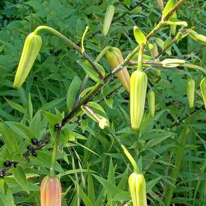 今年になるまで ずっと鹿の子百合だと思っていました。🤔 シーボルトも愛したというタキユリ(崖百合)鹿の子百合は茎が立ち上がるのに対し 地を這うように茎を伸ばします。🤗 いまはまだ小さなツボミを付けているだけです❤️💕❤️