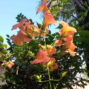 やはりノウゼンカズラは夏空が似合います。💕❤️ 明日は台風が頭の上を通りそう夜中の風が恐ろしい鉢植えその他どうなるか🙏😭😭😭⁉️ 毎年のことだけど不安です🤔