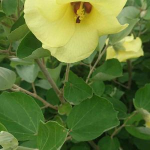 慎ましやかな黄色い花 ハマボウ一見ムクゲのように見えるのですが 侘助のようなおちょぼ口の特徴が印象的です。🤗🎵