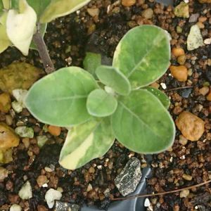 海散歩の時 段丘に見つけた枝変わりの斑入り葉 枝をもらって挿し木したのですが どうやら無事に根が出たようです。🤗🎵 もう少し待ってから鉢に下ろします 。🤗🎵