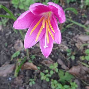 この株だけ咲いています。🤗🎵 ほかの株は 冬の雪をかぶり 地上部の葉は枯れて今は葉が復活しています。🤗🎵 なぜか同じスタートなのに🎵