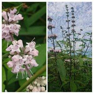 浜辺から少し離れたよそさまの庭に セイヨウニンジンボクの花が咲き初めていました。🤗🎵
