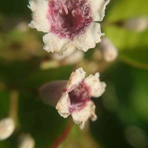 海散歩の道すがら 蓼のような葉に白い小さな花がかわいいです。🤗🎵 花びらに小さな毛が生えています サツマイナモリ ガガイモ の花に似て何故か白兎を連想させられます。🤗💕💕 す き 💕