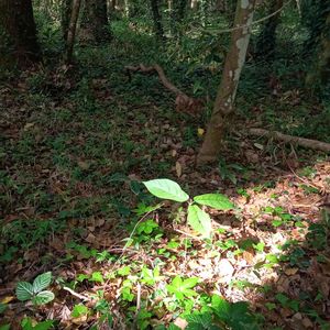 海散歩 防風林の中の道 木漏れ日の 一筋に浮かぶ小さな木 今は私の番よ と言ってるような気がしました❤️🎵 太陽☀独り占め中