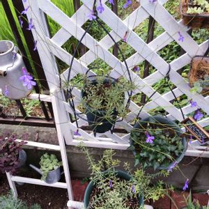 6月にひとめ惚れして連れてきた『ロベリア・プリンセスブルー』 全く休むことなく次々咲いてくれる。 可憐で可愛くて大好き💗 風でゆらゆら〜🎵 スカビオサもカンパニュラも大好きなのに、なかなか綺麗にさせてあげられず😢 ラベンダーは去年、今年、と立て続けに場所を変えて、けれもさ子になってきたー😚 クローバーは可愛いけどすぐ根っこ詰まってしまう感じ❓ 色も綺麗だし、丈夫で私みたいのにはとても助かる😅 ここを中心に私の小さな癒しの空間を作りたいのだけど、お気に入りのコーナーはジメジメした人がいっぱいいるのが悩みの種😔💦 カビも生えるし😫 すぐ右にあるオリーブの木も枯葉が落ちてきて止まらない😢 ゆっくりのんびり楽しもう🎵