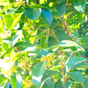 職場の裏のスペースで 若い男子君がお世話している銀木犀 まだ50センチくらいの木本ですが 初めて咲いています ペアで育てている金木犀は先週開花してましたが こちらは蕾も少なく控えめな感じ でも とても健気で可愛い💕