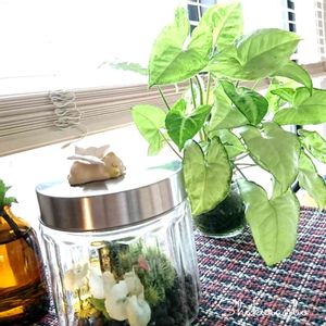 雨の月曜日、外出自粛には ちょうど良いお天気かも けれどお仕事で外出を余儀なくされている方もいれば インドア生活に飽きて 他県にパチンコに行くアホがいる どうなるんだ、この国は (눈_눈) 。。。 止まない雨はないと言うけれど 😈新型ウイルスもこの雨とともに 洗い清めてくれればいいのにっ! ☝️一年前、3coinsで揃えた 三種類のシンゴニウム そのなかでも 一番元気な💚シンゴくん 初めて登場? そして 苔テラリウムの 斑入りユキノシタ 斑入りというより ほとんど白くなっちゃった あれ❤️赤い葉っぱが出てきた! こんなとこにも 特異因子がいるんだなあ これを人間は貴重品がる