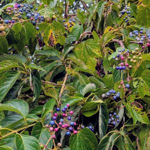 実りの秋 ①ノブドウ ②シオデ、花は7月 ③銀杏 ④コノテガシワ ③以外は花に気づいたことはない。来年はしっかり観察しなければ。