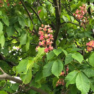 車の窓から🚗 こんな街路樹見たことないよー 検索結果⬇️ 【ベニバナトチノキ】 ヨーロッパ産のセイヨウトチノキ(マロニエ)と北アメリカ産のアカバナアメリカトチノキを交配して作出された園芸品種 銀座のマロニエ通り、パリ🇫🇷のシャンゼリゼ通りに