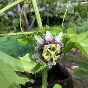 暑い日が続きますが、漸くパッションフルーツの花が咲きました。🌸 🌱🌱🌸🌼