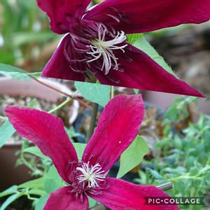 クレマチス グラビティー・ビューティー❤ 花開く様子(右上から左回り) 昨年は咲かなかったけど今年初めて咲きました😊🎶