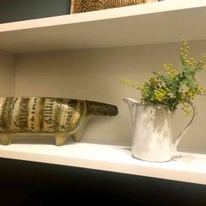 やっぱりミモザは可愛い♡ ミルクピッチャーに入れて棚に飾る(^ ^)