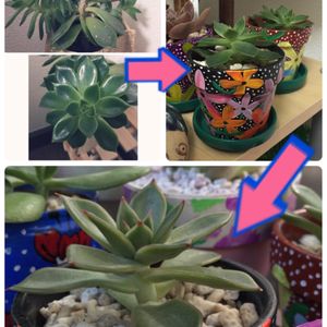 1〜2ヶ月くらいに雑貨屋さんで 残念な姿のエケベリア?をお迎えして、 挿し木にして現在です( ^ω^ ) 未だに名前がわかりません\(^o^)/笑 葉先だけちょと赤くなりました。 他のエケベリアと比べて、すぐシワが出ます(´°ω°`) 誰か分かる方教えて下さい\(^o^)/✨