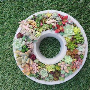 今年最後のセメントリース 多肉植物とセダムでカラフルに仕上げました♪