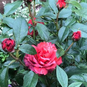 2021.6.25 おはようございます☀ また大輪のホットココアが咲き始めました😍 うちはミニバラが多くて 大輪のはこの子だけなのですが、 毎回綺麗に咲いてくれて親孝行です💓 トゲも大きいので、周りの草取りの時によく 「痛っ!」ってなりますが(笑) それでもお迎えして良かったです🥰 少しレトロな色も好きです💓