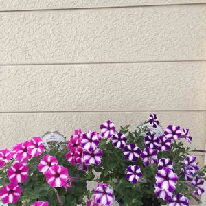 おはようございます 今日の天気は曇のち晴れ気温30度 今日のお花は「PWxカインズコラボ商品の ペチュニアブルーベリージャムさんと ペチュニアラズベリージャムさん」 です! 今年はPWのペチュニアに挑戦したくて 探して探して売ってなくって 探して続けて10日間(笑)見つけたのが 「PW×カインズコラボペチュニア」 でした お迎えしたのが3月25日 初投稿が3月27日です 5月頃の株の大きさが ブルーベリーさんがげんこつで ラズベリーさんが手のひらを広げた状態でした 5月15日に切り戻しして 約1ヵ月でやっとやっと 株はモリモリに 花は少しずつ咲き揃って来ました! やはり切り戻しは植え替え時 即時実行厳守ですね! 切り戻しが遅れた分だけ 成長も遅れますよね~ザンネン!