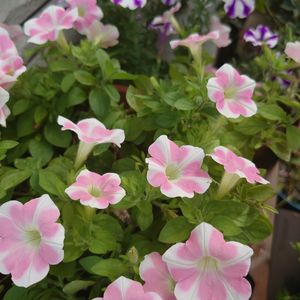 Morning☀️ カインズ定点観測 あふれ咲きペチュニア 7つのかわいい姿を見せてくれてます。 あふれるほどに咲いておくれ💜